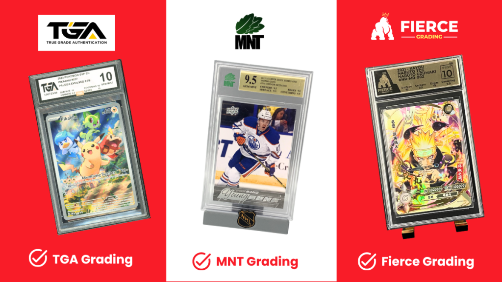 Canada is home to three notable grading companies: TGA Grading, MNT Grading, and Fierce Grading. Each has carved out its place in the market, offering unique features and services to meet the needs of hobbyists. Alongside them, EVORETRO supports collectors by providing premium protection and display solutions for both raw and graded cards.